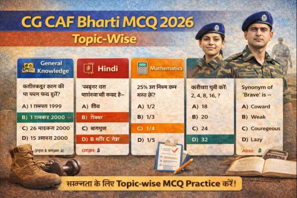 CG CAF Bharti MCQ 2026 Topic-Wise लिखित परीक्षा से सामान्य ज्ञान, हिंदी, गणित, अंग्रेजी और रीजनिंग से प्रश्न पूछे जाते … Read more