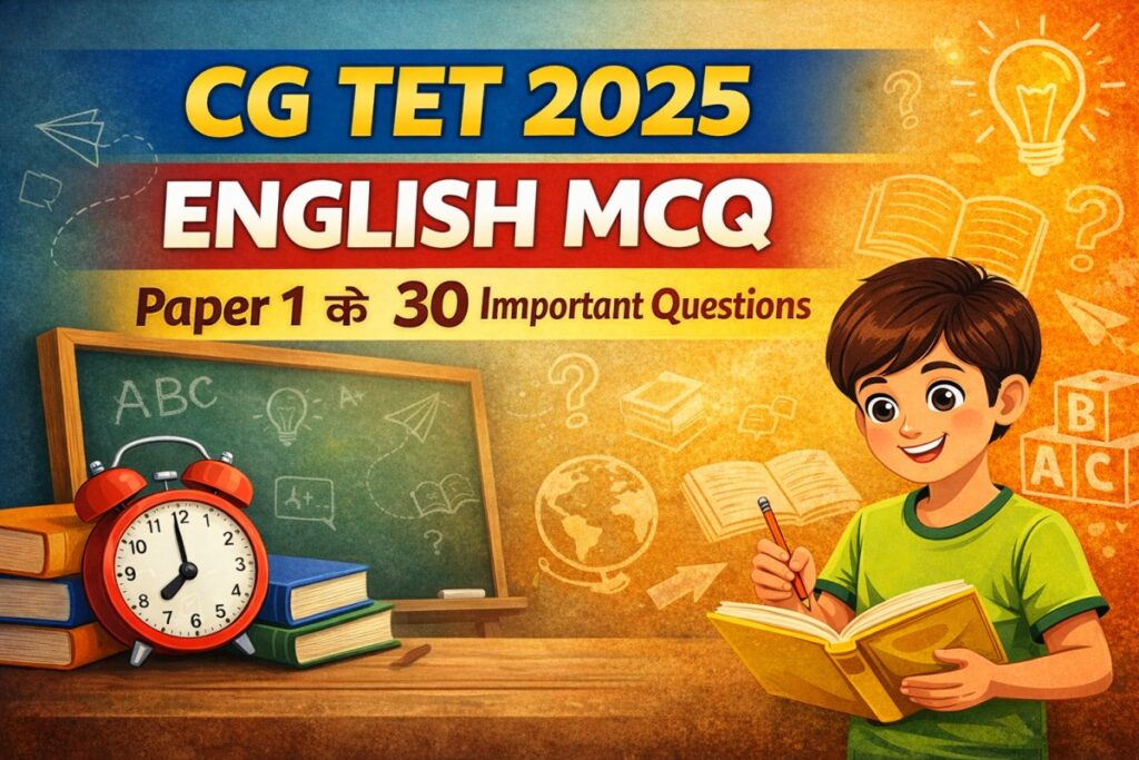 CG TET 2025 English MCQ | Paper 1 के 30 महत्वपूर्ण प्रश्न उत्तर